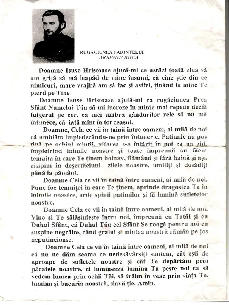 Rugăciunile părintelui arsenie boca sunt spuse zi de zi de mii și mii de credincioși. .. În timpul rugăciunii, însă, grijile.