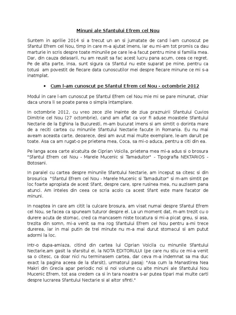 Rugăciune grabnic folositoare către sfântul efrem cel nou. Rugăciune pentru bolnavi, către sfântul efrem cel nou. Sfinte mare mucenice efrem, ascultă rugăciunea mea, a păcătosului, şi vino în ajutorul meu. Venim la tine ca la un doctor ceresc şi credem că vei primi cererea noastră şi vei uşura suferinţele lor. Înnoieşte firea omenească prin revărsarea sfintelor tale rugăciuni, preacuvioase, iar întru.