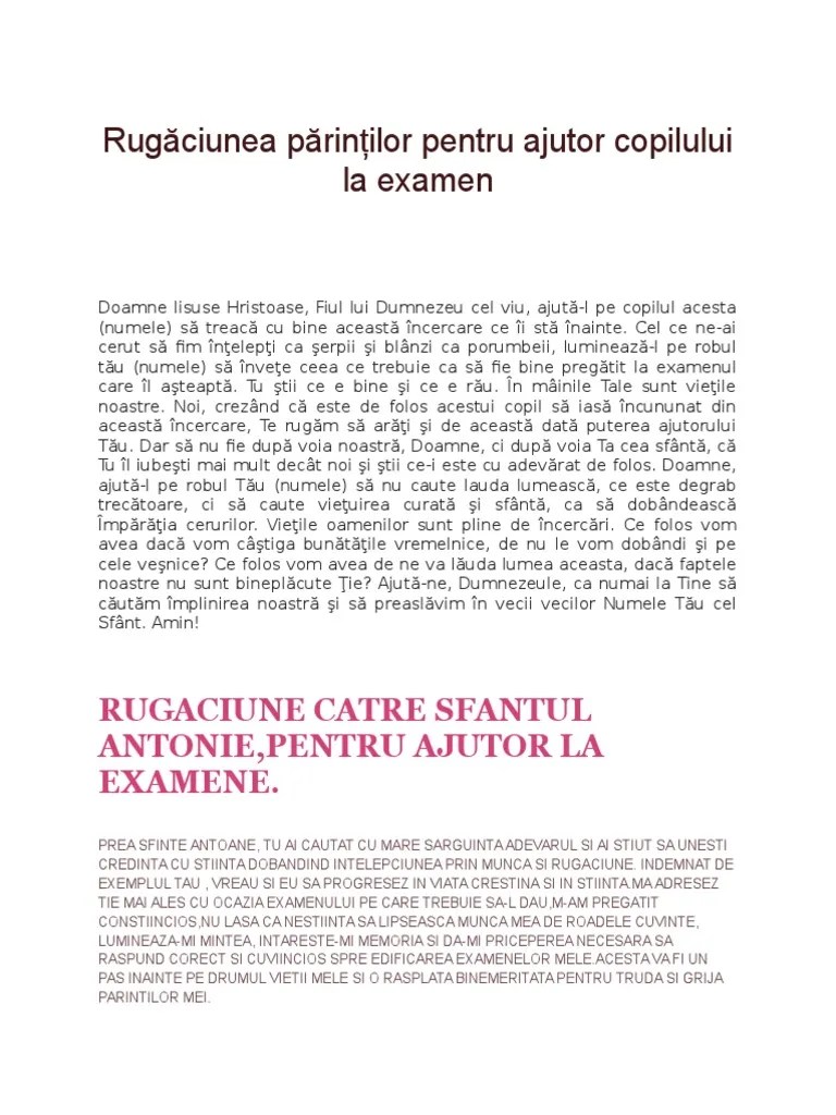 Sfinte antoane, tu ai cãutat cu mare sârguintã adevãrul si ai stiut sã unesti credinta cu stiinta. Dacă treci prin momente grele trebuie să spui această rugăciune iar problemele tale se vor rezolva. Rugãciune pentru reusita la examen. Doamne iisuse hristoase, fiul şi cuvântul lui dumnezeu, cel ce ai fost judecat de arhiereii, preoţii, cărturarii şi fariseii timpului în faţa lui pilat, şi osândit: Multumesc pentru aceasta minunata rugaciune si sper sa ne fie de folos.doamne ajuta ! Umple de bucurie şi de veselie sufletul meu şi mă mântuieşte, ca un.